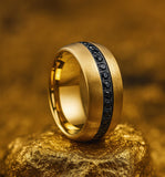 This bold men's ring features a brushed gold finish paired with a striking inlay of polished black stones, creating a powerful and luxurious contrast. Durable, stylish, and designed to stand out, it’s the perfect statement wedding band or gift for any man who wants a modern, high-end look.