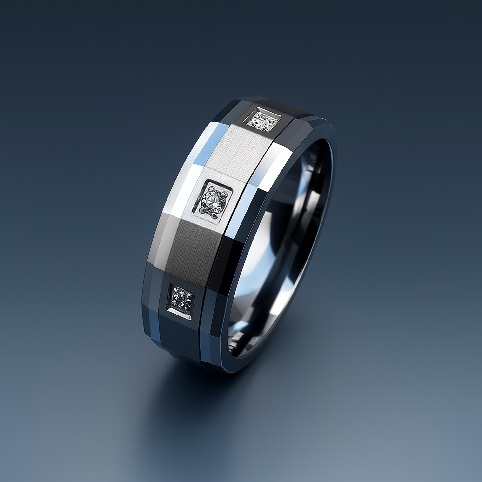 Mens Diamond Wedding Band | Geometric Square Stone Ring | Modern Two Tone Mens Ring | Luxury Polished Band | Unique Groom Gift - 8mm