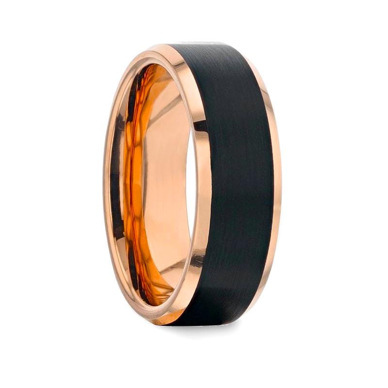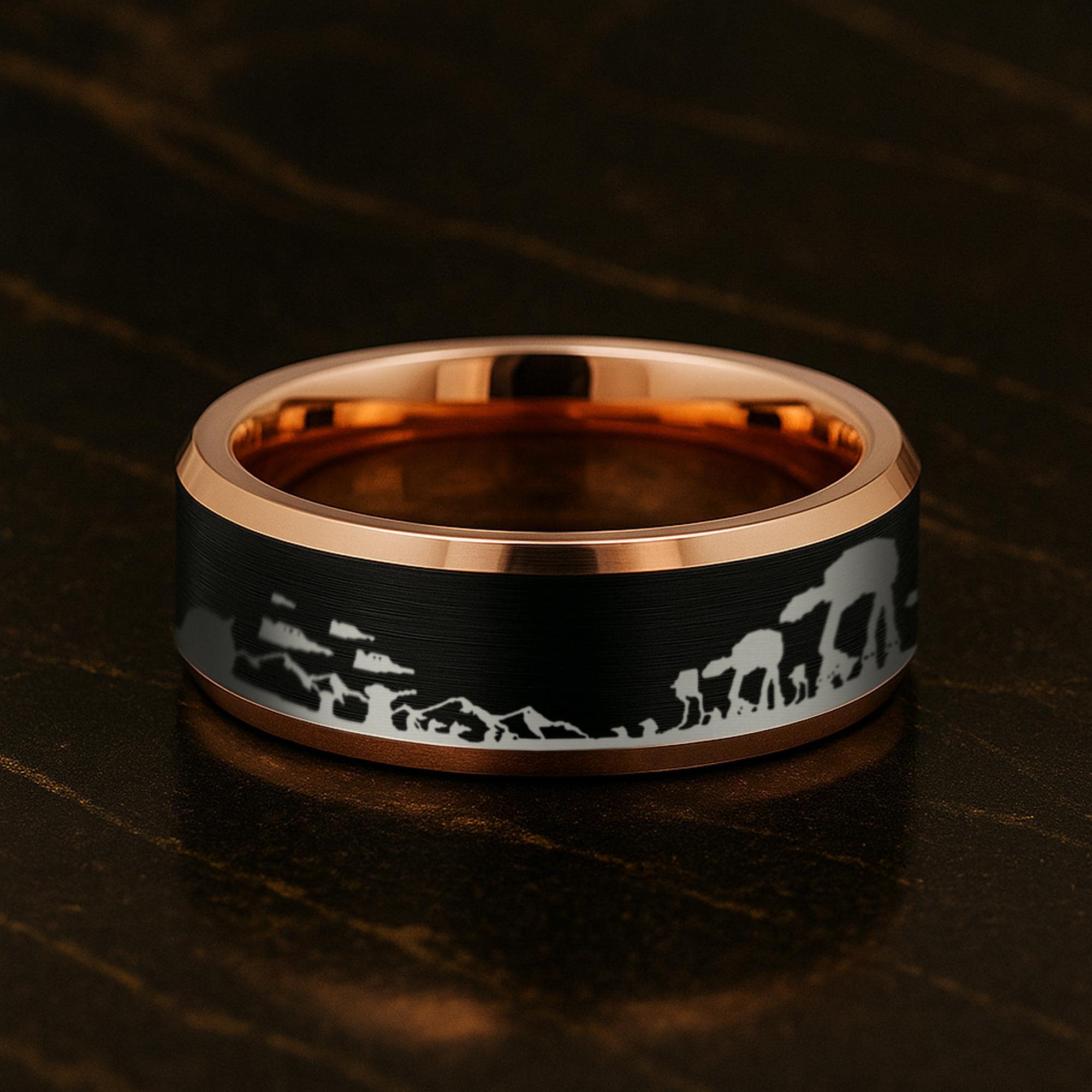 Hoth Battle Scene Ring, Black Tungsten Ring with Rose Gold Edges: Hoth Battle Scene Band - 8mm Wide