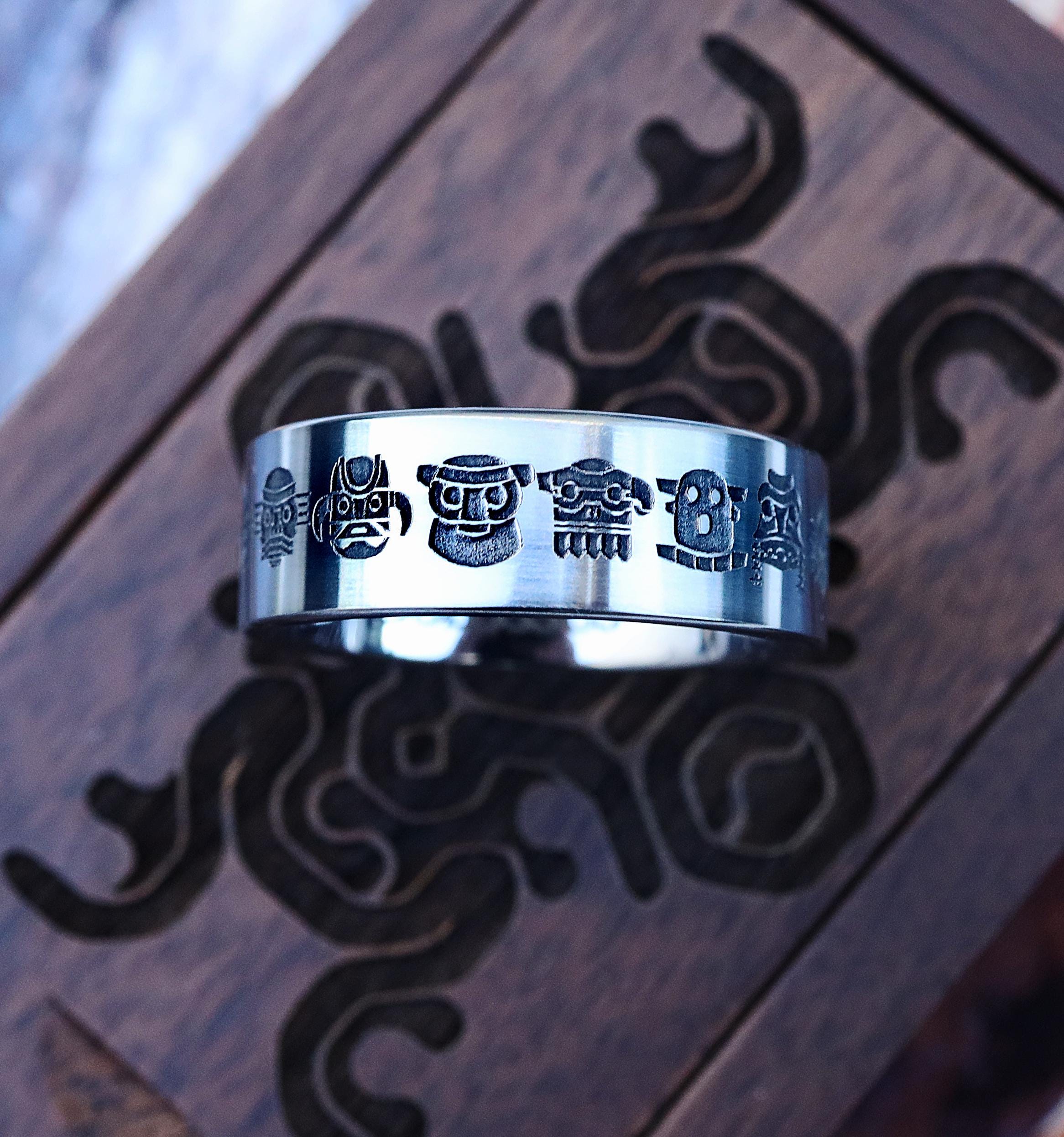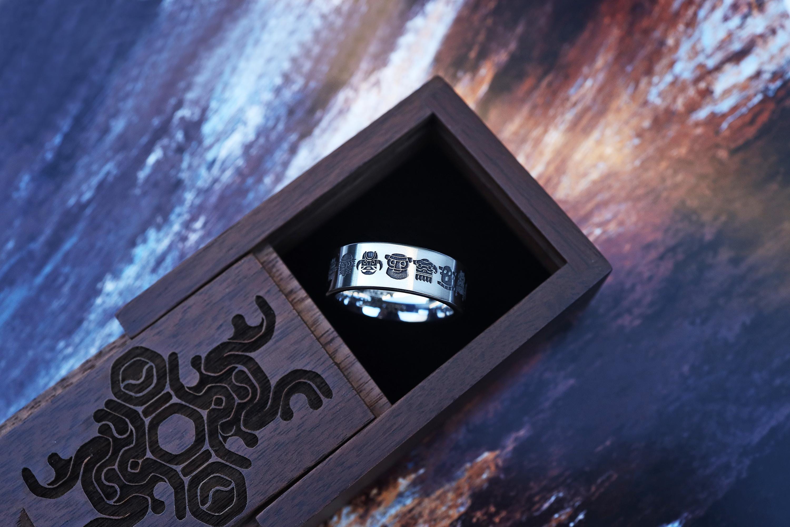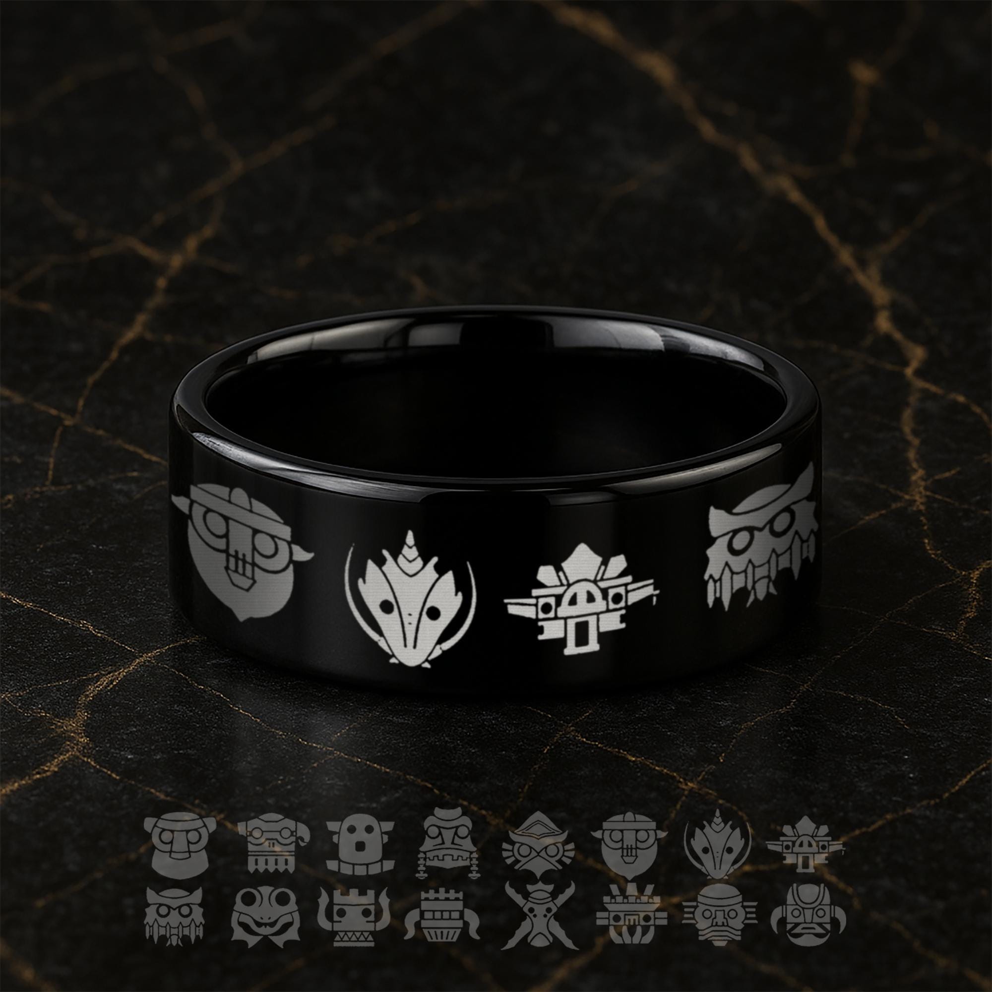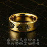Shadow Colossus Symbol Ring | Black Tungsten Mens Band | Colossi Sigil Engraved Ring | Gamer Wedding Band - 8mm Wide