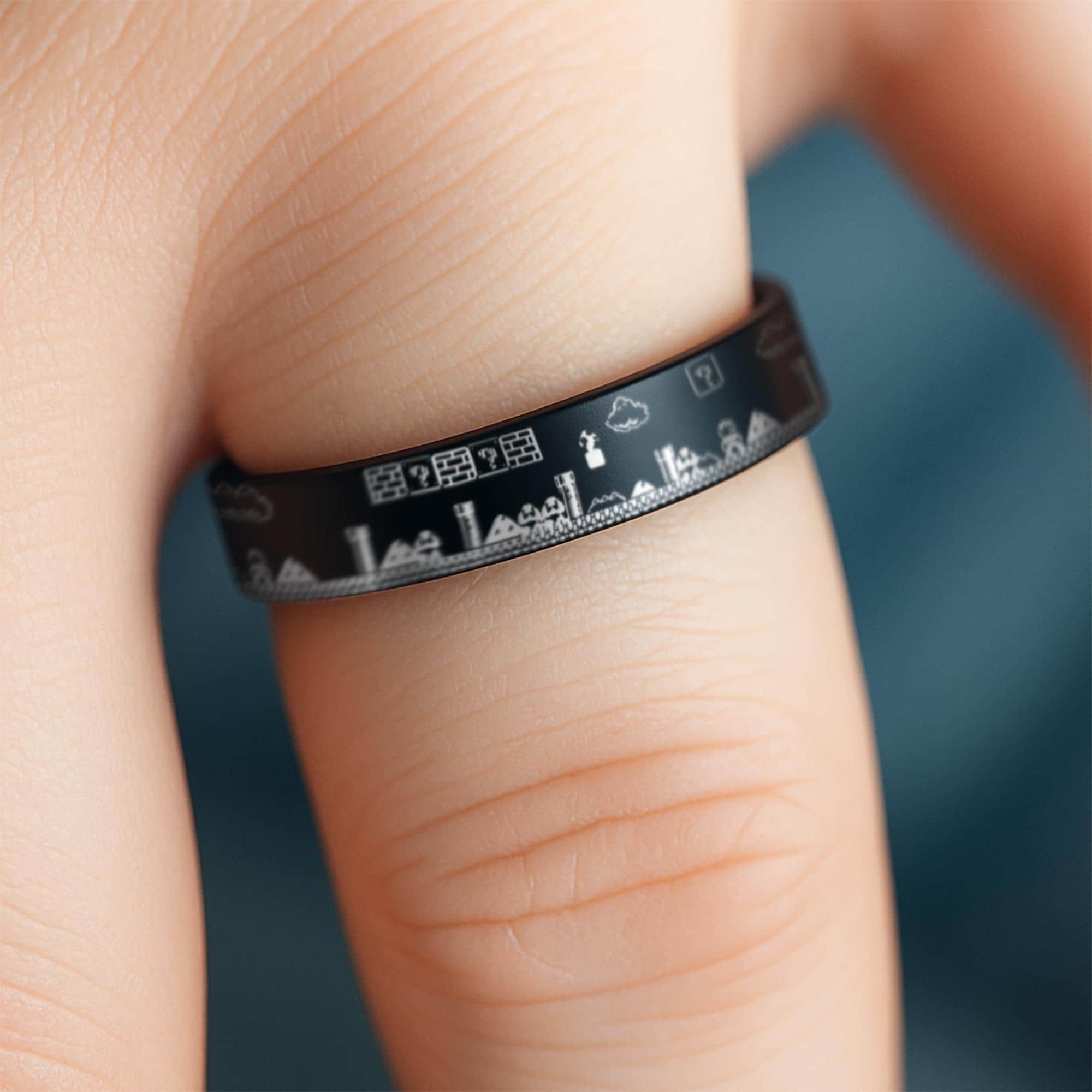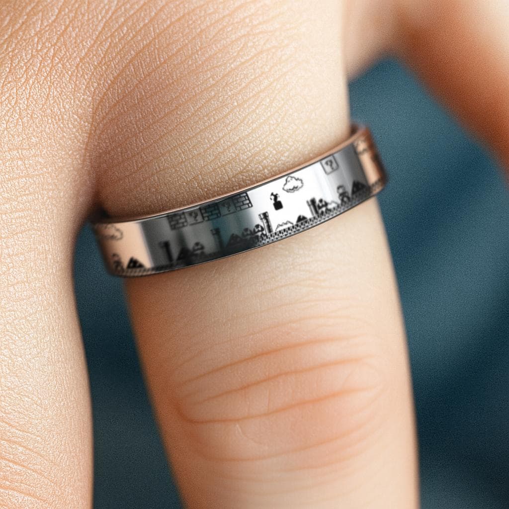 Thin Mario Ring, Thin Gamer Ring, Video Game Ring, Gamer Ring, Game Level Tungsten Ring - 4mm Wide