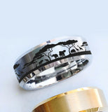 Engraved African Safari Animal Landscape Ring, Africa Animals Engraved Promise Ring, African Savannah Wedding Band, Tungsten Carbide - 8mm