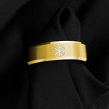 This tungsten carbide ring features the Chi Rho symbol in silver and outlined in black, one of the earliest Christian monograms representing Christ. The polished gold finish paired with a brushed center gives it a refined and meaningful design. Scratch-resistant and durable, it’s the perfect choice for a Christian wedding band, promise ring, or a lasting expression of faith.