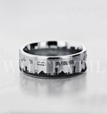 This tungsten carbide ring blends strength with style, featuring a brushed center finish. The centerpiece showcases an awesome and well known game level that goes around the entire ring, perfect for fans.