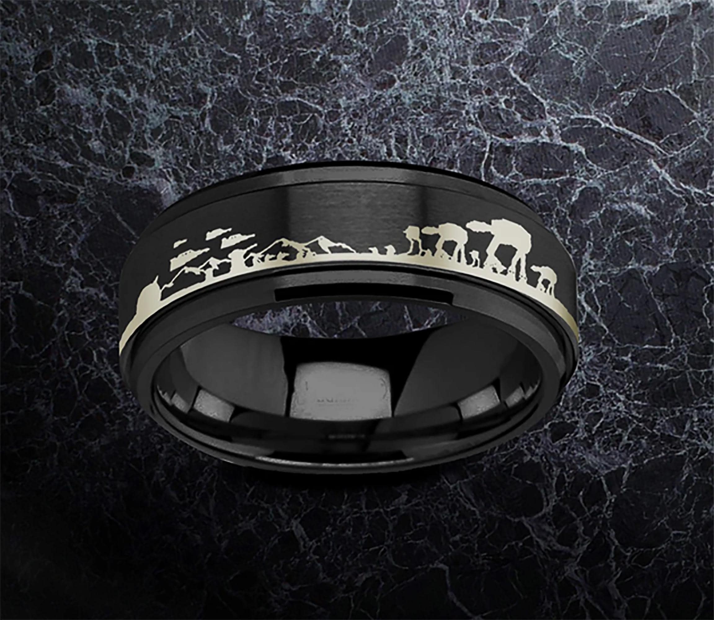 Hoth Battle Scene Ring, StarWars Spinner Ring, ATAT ATST Ring, Engraved Tungsten Spinner Ring - Comfort Fit, Anxiety Spinner Ring - 8mm