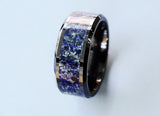 Personalisierter Ehering aus polierter schwarzer Keramik für Herren mit Inlay aus blauem Lapislazuli und abgeschrägten Kanten, Ehering aus blauem Lapislazuli – 8 mm