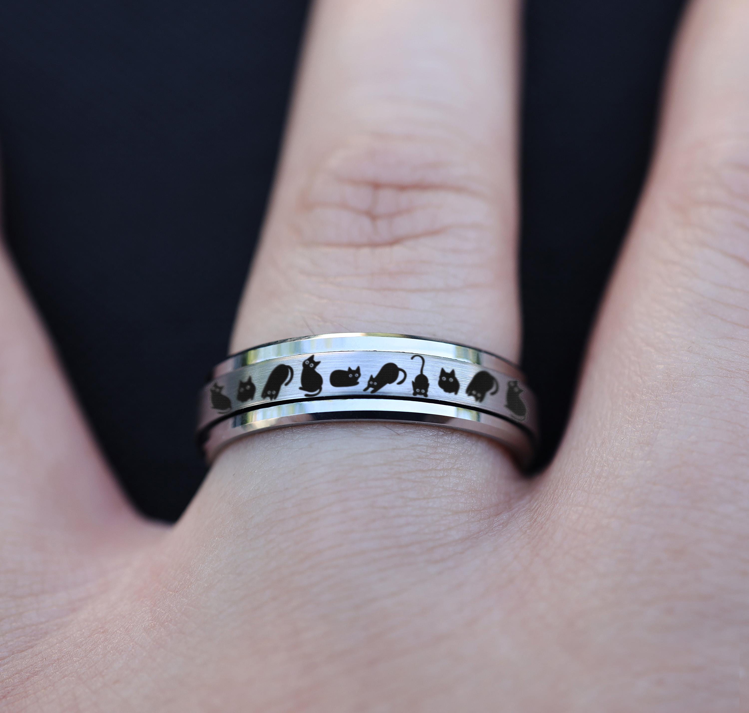 Black Cat Tungsten Spinner Ring: Fidget Band, Cat Lover Jewelry