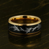 Black & Gold Tungsten Ring: Shark Engraved Wedding Band