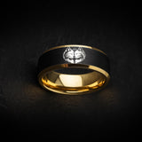 This tungsten carbide ring features a striking engraved cat design, symbolizing loyalty, courage, and the spirit of the wild. The brushed black center contrasts beautifully with polished gold edges, creating a bold and meaningful look. Scratch-resistant and built for durability, it’s the perfect choice for animal lovers, wedding bands, or unique everyday jewelry.