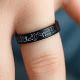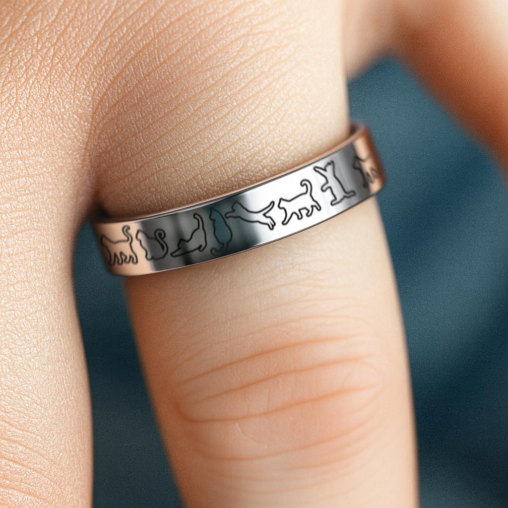 Outlined Cat Ring, Pet Cat Ring, Cat Love Ring, Cat Lady Ring, Cat Tungsten Carbide Ring, I love my Cat Ring - 4mm Wide