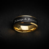 Engraved Old English "Always & Forever" Ring, Engraved Black 18K Gold Plated Tungsten Ring, Classic Mens Ring - 8mm Wide