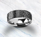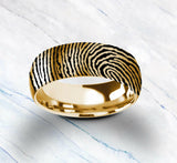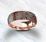 Brushed Finish Rose Gold Plated Tungsten Ring with Fingerprint Engraving, Fingerprint Engraved Personalized Wedding Ring - 8mm