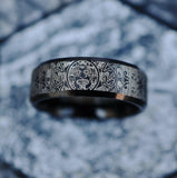 Engraved Ancient Indian Aztec Culture Ring, Tribal Pattern Ring, Aztec Warrior Ring, Mexican Mexico Ring, Nahuatl Jewelry - 8mm