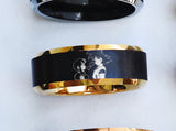 This is a beautiful engraved ring with a beautiful Goku & Chichi inspired engraving on one side of the ring.