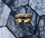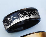 Engraved Mountain Mens Band, Two Tone Black Ring, Mountain Landscape Scene Ring, Engraved Engagement Band, Forest Ring, Nature Ring - 8mm