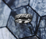 This is a beautiful mens (or womens) mountain and forest design ring. This is the perfect ring for anyone that appreciates the mountain and forest outdoors; beautiful, simple and elegant.