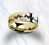 This is a beautiful engraved ring with a beautiful Snoopy inspired engraving going around the entire outside of the band. The design Snoopy and Woodstock around the entire ring and is available in multiple colors.