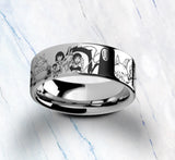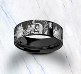 This is a beautiful engraved ring with a beautiful Studio Ghibli inspired engraving going around the entire outside of the band. The design has numerous characters and is available in multiple colors.